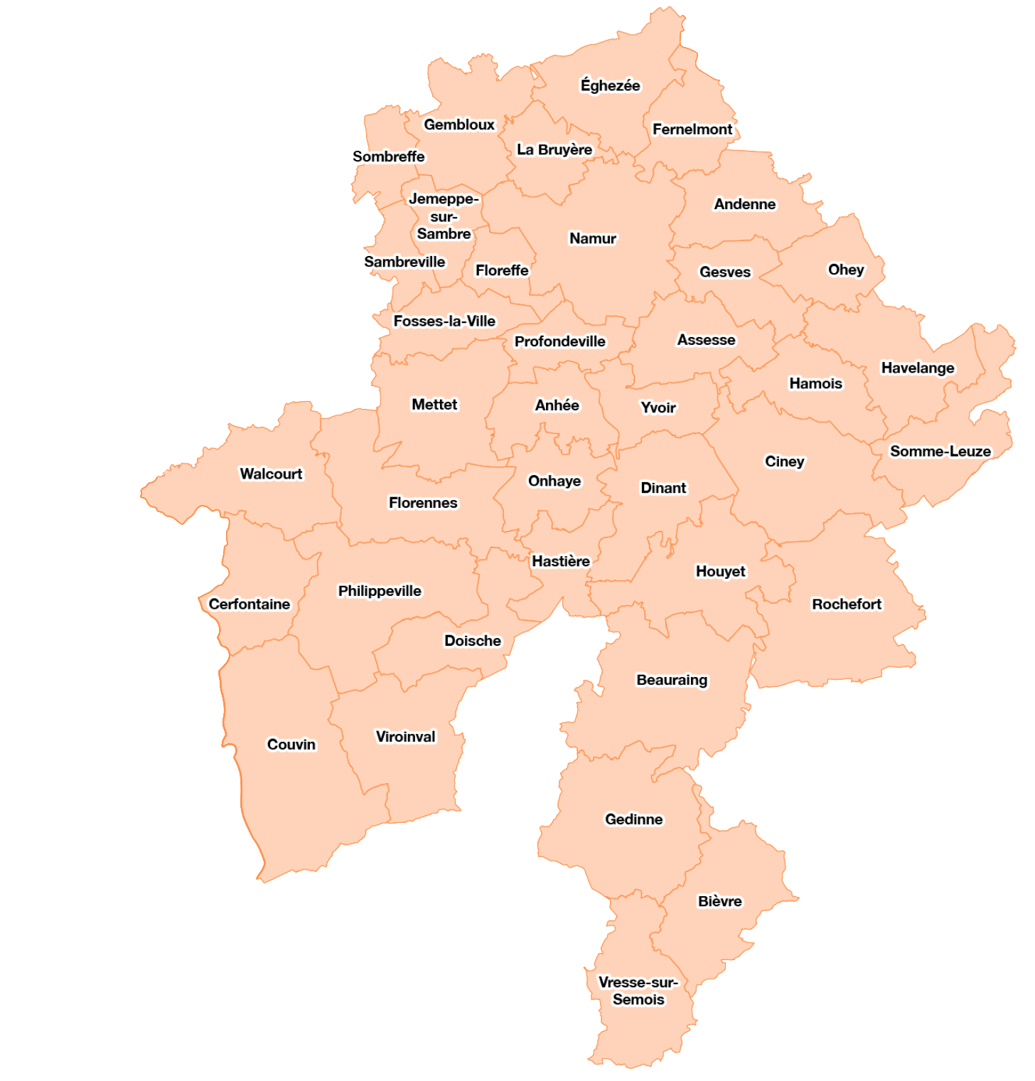 En province de Namur, c'est l'OST Namur qui est agréée par l'AVIQ pour intervenir dans les collectivités implantées sur le territoire provincial.